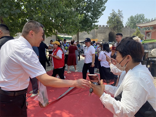 活动现场,游客们在南城门、张载墓、城隍庙、吕蒙正像、魏征祠、鸿台寺、花桥刘豆腐加工基地、花桥刘风情园采摘园、丁庄惠远牧业等旅游景点拍照打卡留念,并通过朋友圈、抖音等社交平台分享自己的旅行体验,实名登记后即可免费领取武林大会擂台赛门票一张。