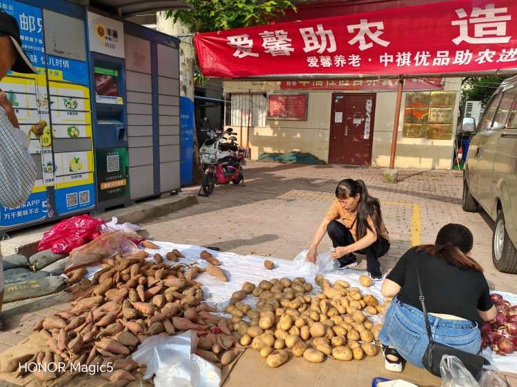 幸福社区慈善志愿者工作站的志愿者们联合社区和物业共同举办了助农惠民蔬菜进社区活动。志愿者们把无公害的红薯、土豆、山药、洋葱、苹果、梨、非转基因的菜籽油等农产品送到社区家属院,帮助农民直接销售,居民们排队挑选满载而归。